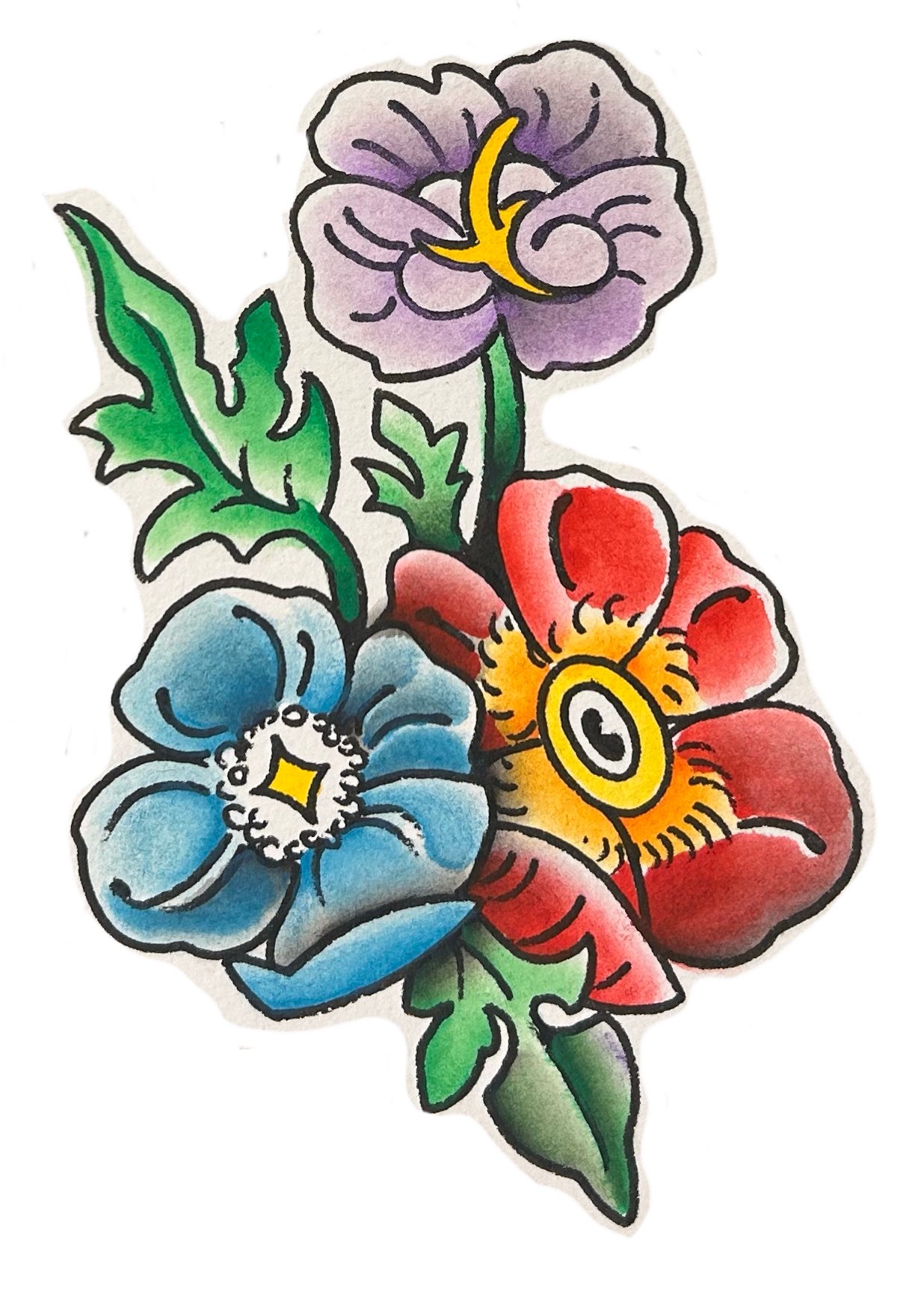 This tattoo can be done in color or black and gray, and the colors can be changed if desired. Final price to be $250-350 depending on final size and placement. $100 purchase price will count as a non-refundable deposit, and will be taken off the final price of the tattoo.
