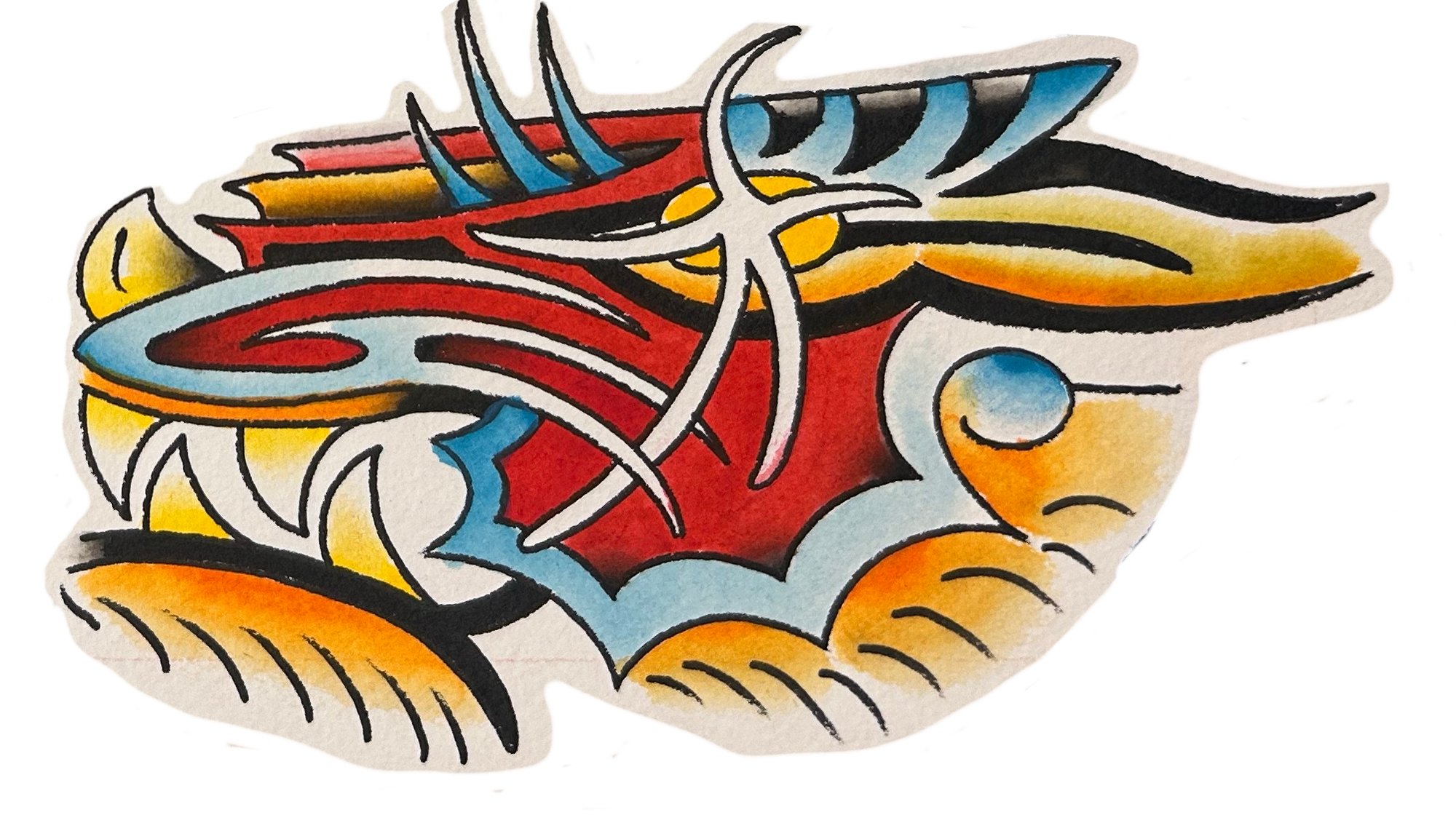This tattoo can be done in color or black and gray, and the colors can be changed if desired. Final price to be $250-350 depending on final size and placement. $100 purchase price will count as a non-refundable deposit, and will be taken off the final price of the tattoo.
